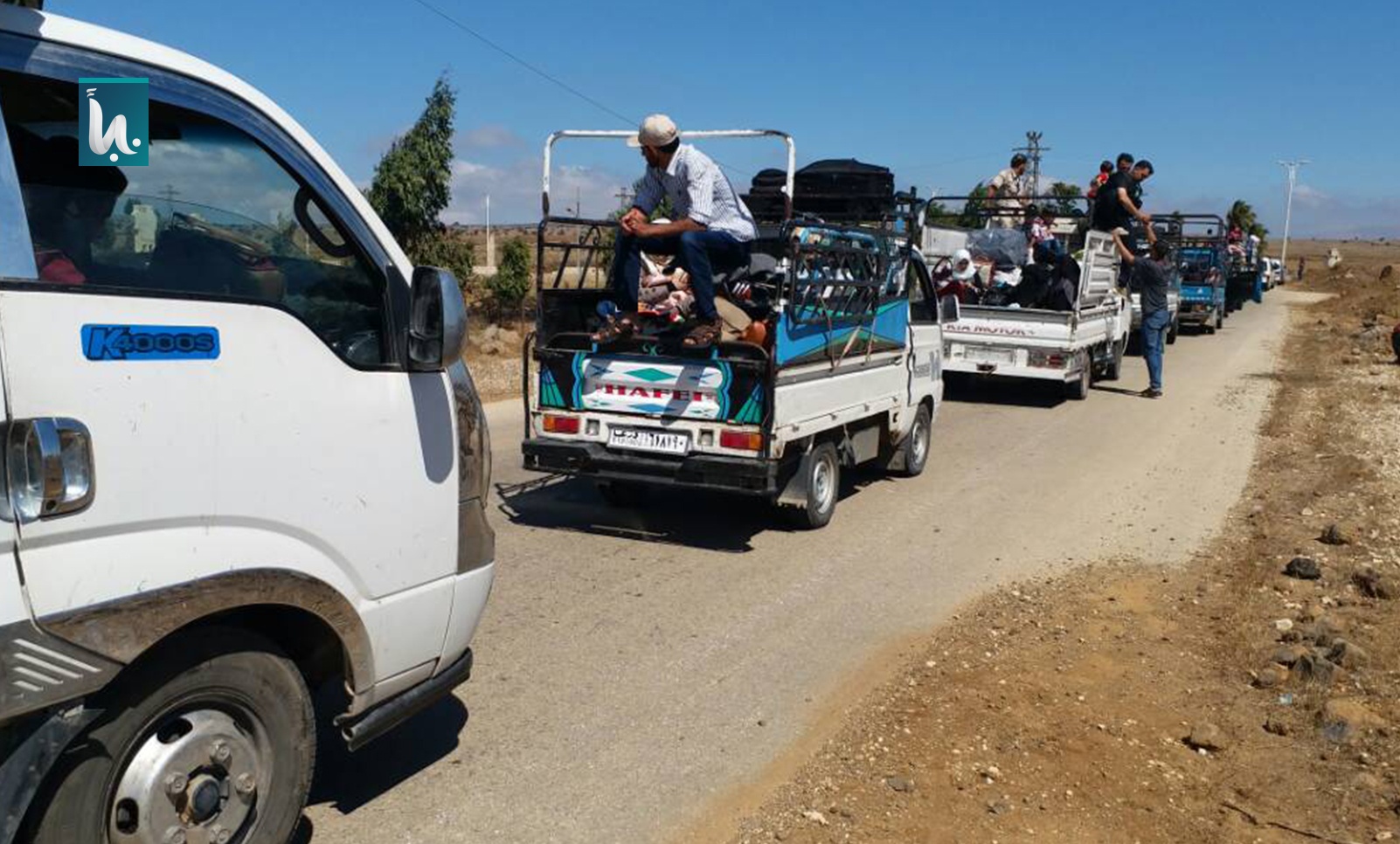 مقاتلون ومدنيون يتوجهون إلى جباتا الخشب للخروج ضمن حافلات التهجير إلى الشمال قبل عامين (نبأ)