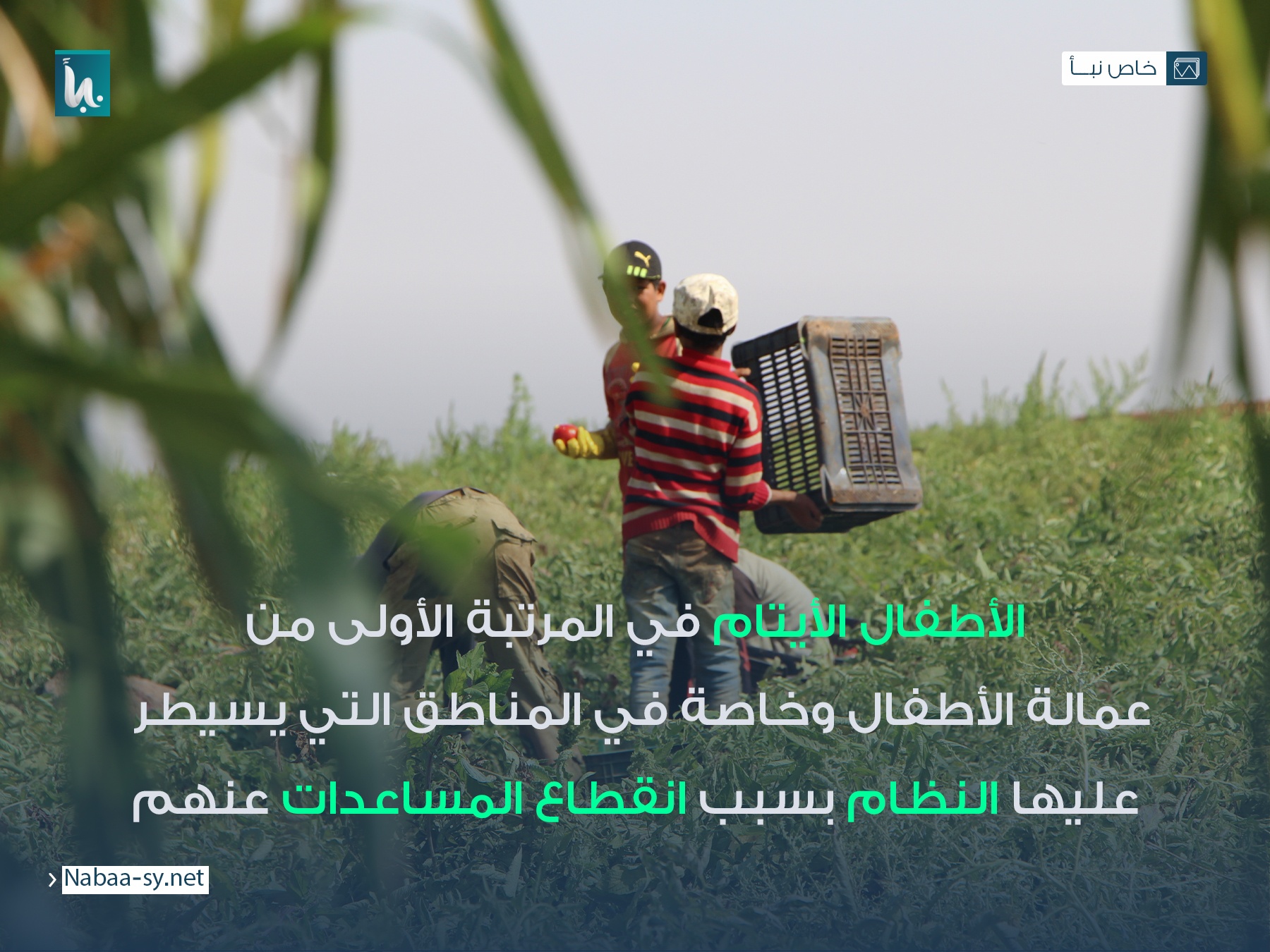 الأطفال الأيتام في المرتبة الأولى من “عمالة الأطفال” وخاصة في المناطق التي سيطر عليها النظام بسبب انقطاع المساعدات عنهم وعن عائلاتهم.