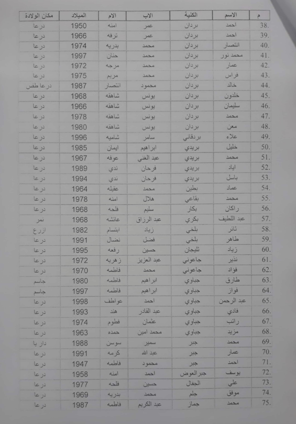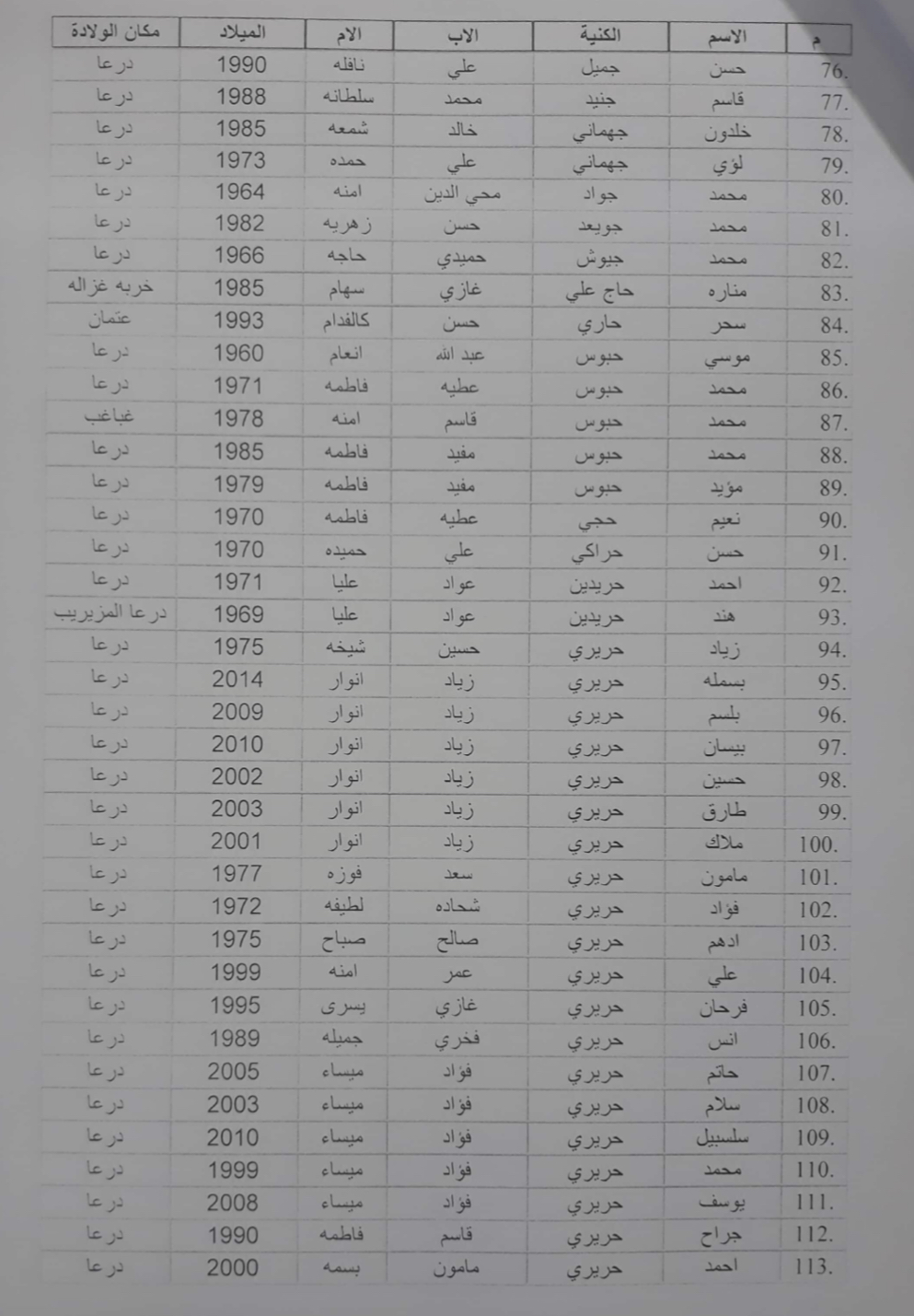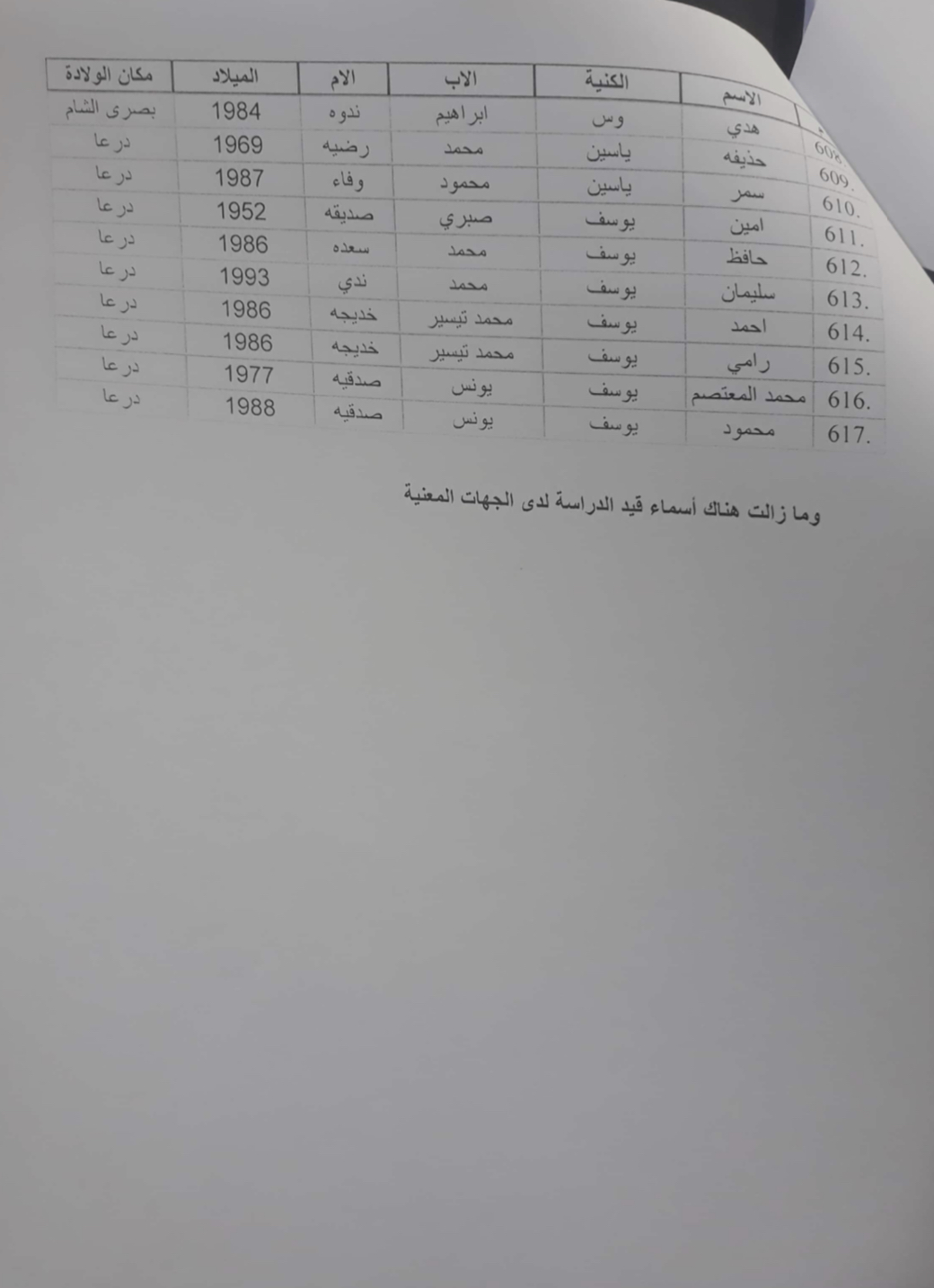 قال مصادر خاصة لـمؤسسة نبأ، أن سلطات النظام أقرّت رفع الحجز عن ممتلكات وعقارات 617 شخص من محافظة درعا، بعد سنوات من الحجز بقرار صادر عن محكمة الإرهاب بدمشق.