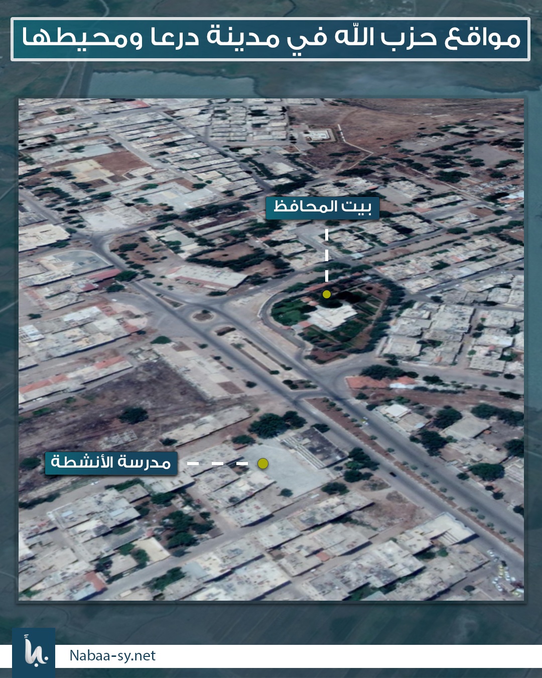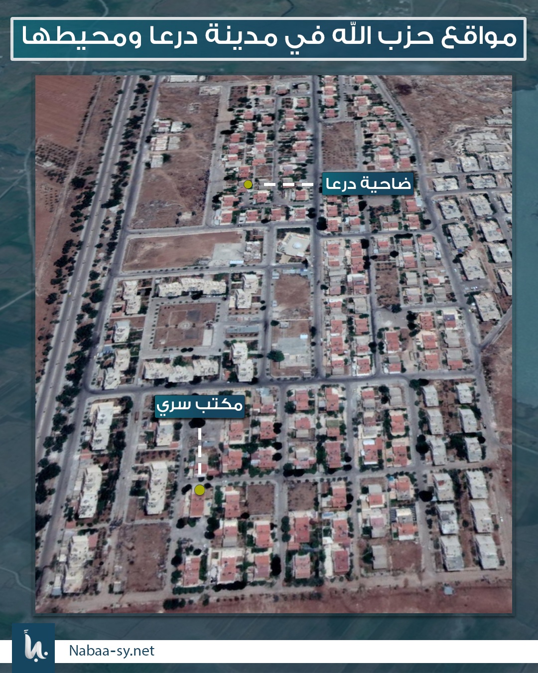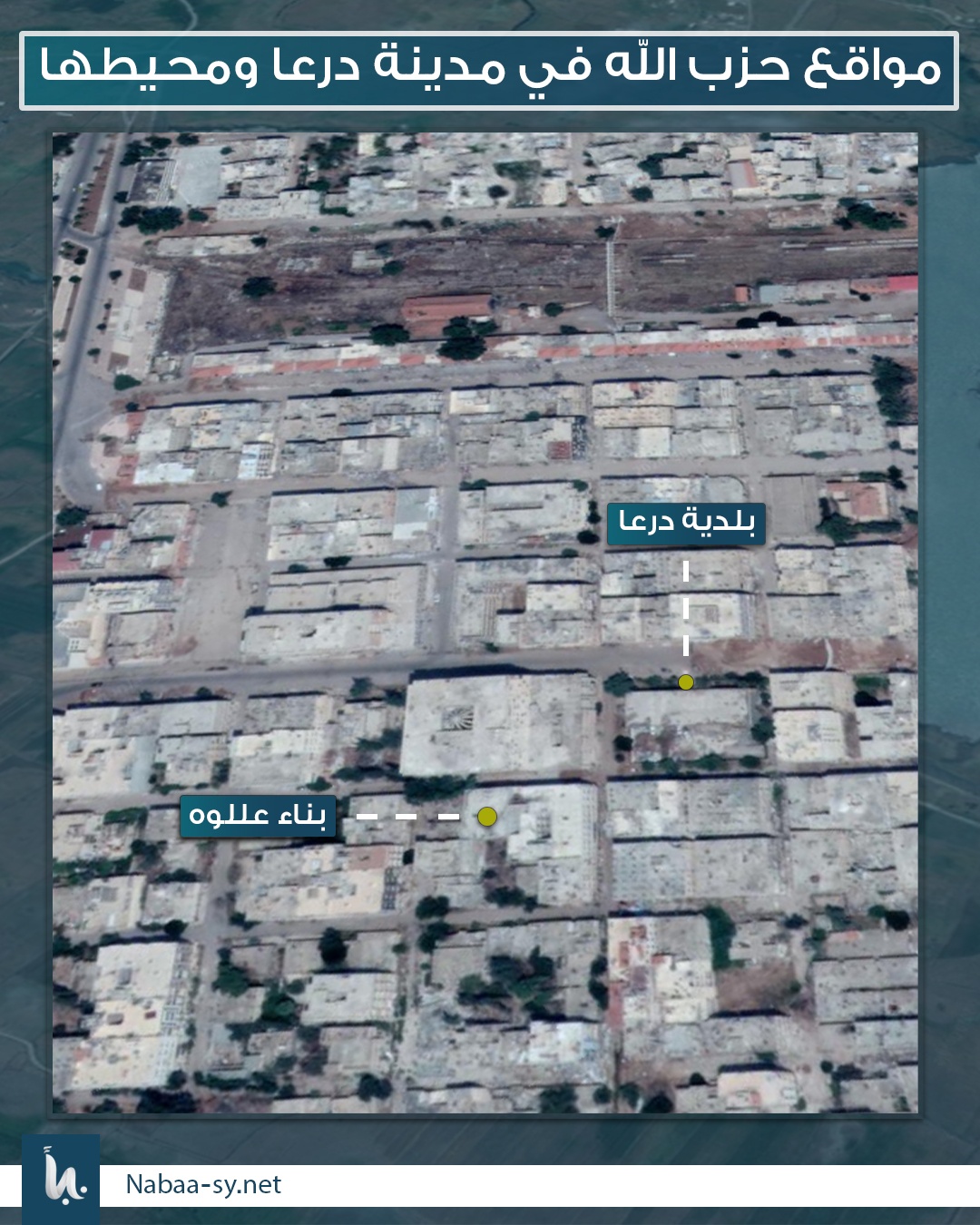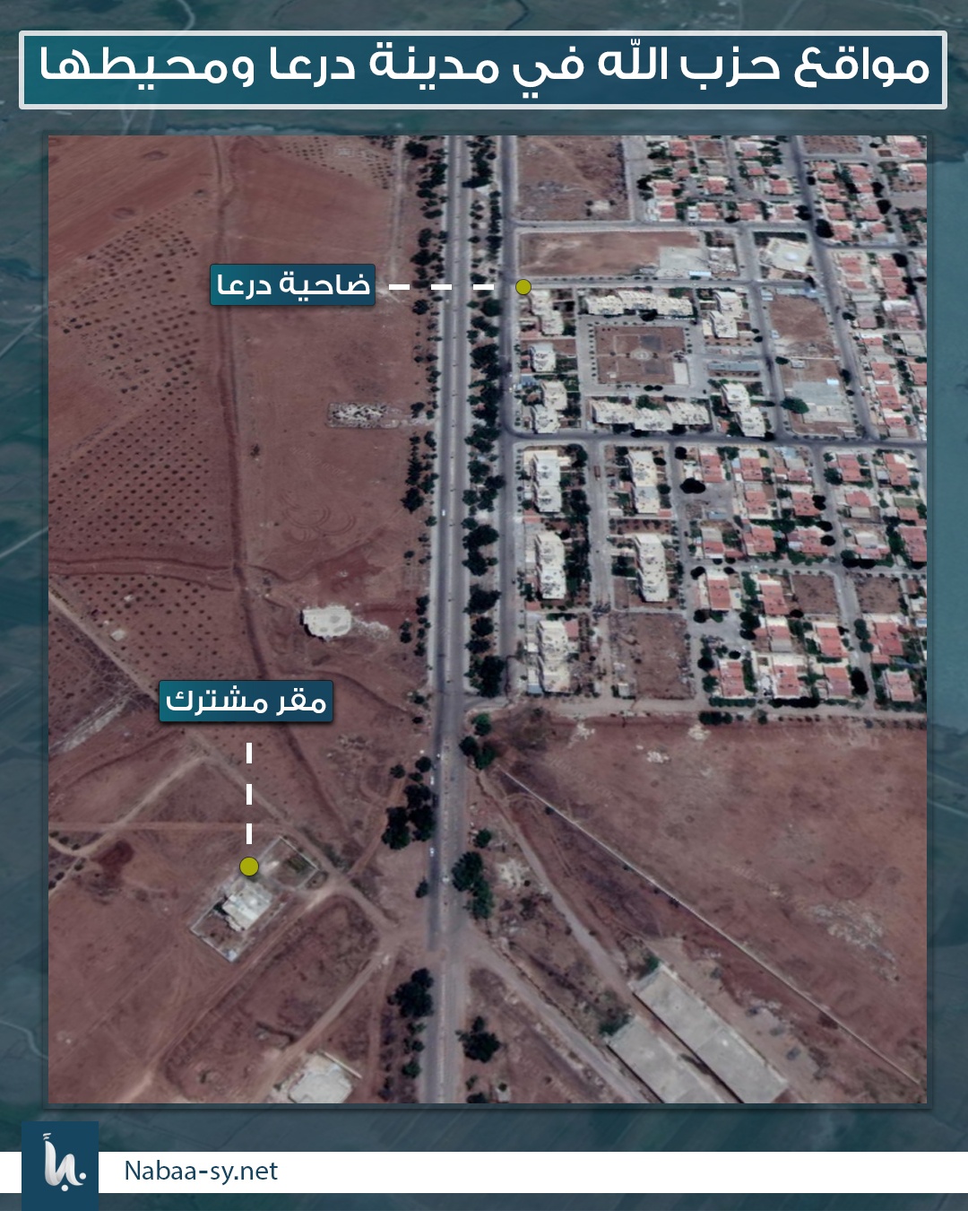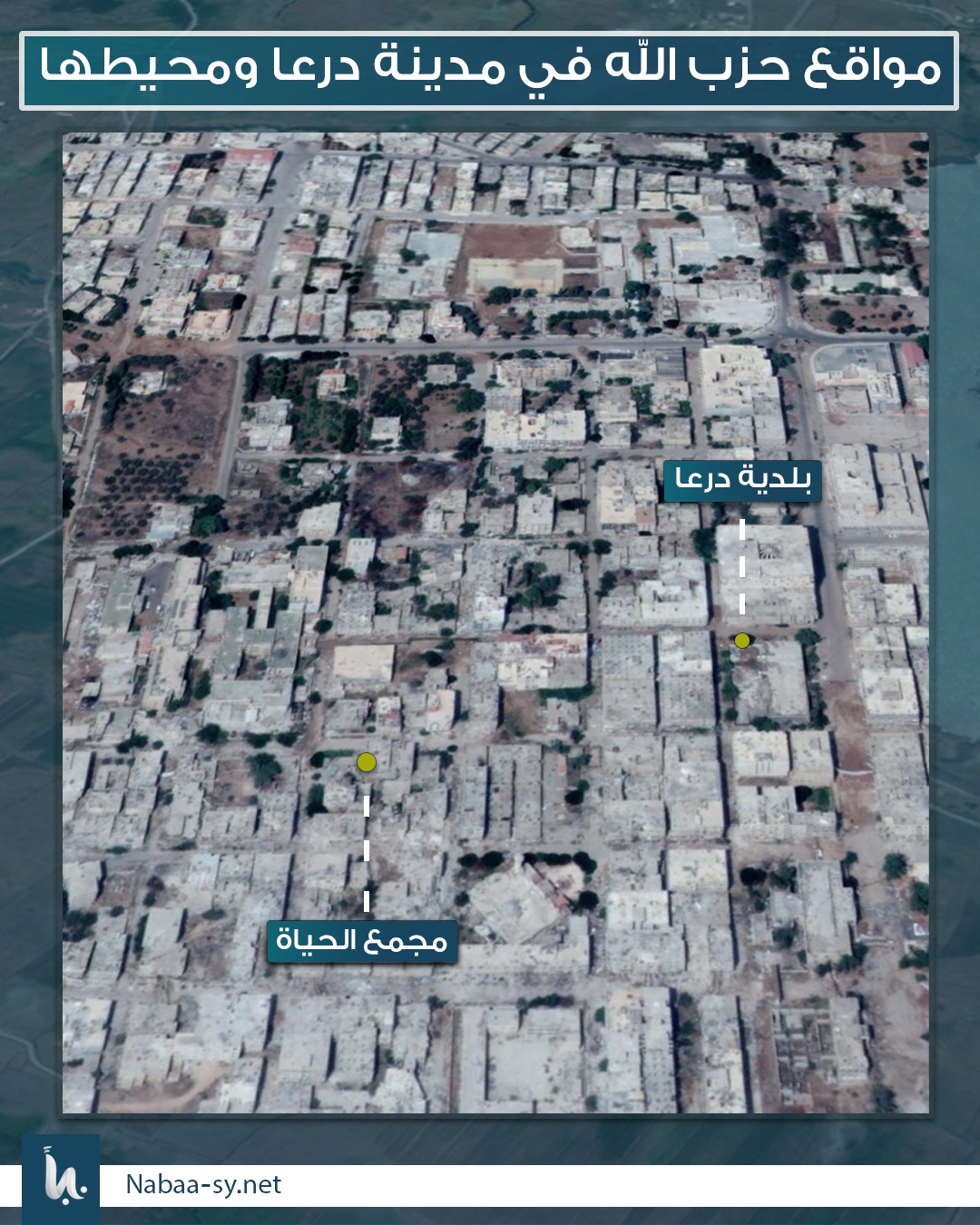 من أهم المواقع العسكرية لميليشيا حزب الله اللبناني، شارع هنانو وسط ومدينة درعا، وبناء “عللوه” و”الحياة الطبي” في حي المشفى الوطني بدرعا المحطة، حيث تتمركز مجموعاته في هذه المناطق تحت غطاء الفرقة الرابعة.