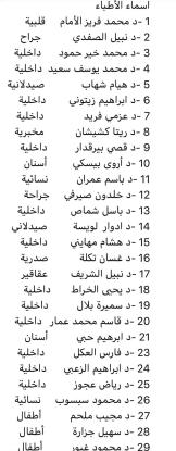 ونشرت صفحات موالية للنظام على موقع فيسبوك، إحصائية تحوي 29 اسماً لأطباء فقدوا حياتهم بعد صراعهم مع فايروس كورونا منذ بداية تفشيه في سوريا.