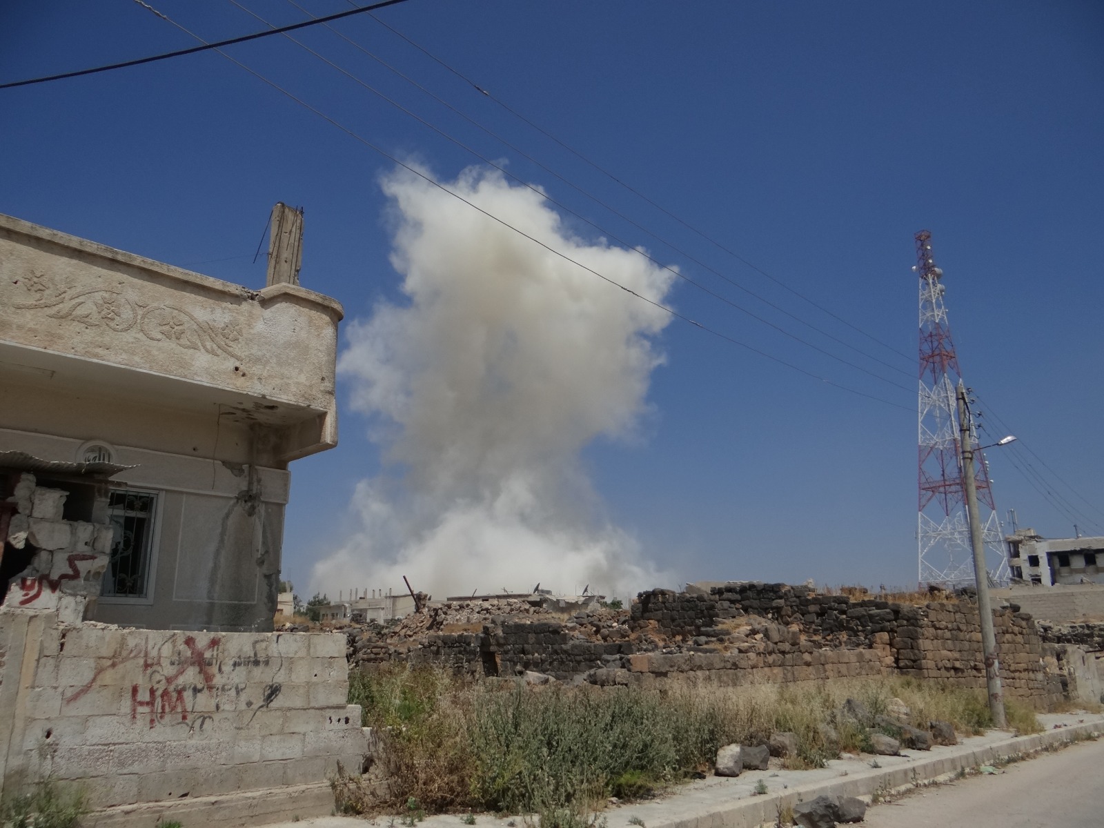 وصعّدت قوات النظام والميليشيات الأجنبية قصفها على الأحياء المحاصرة في مدينة درعا بصواريخ شديدة الانفجار يُطلق عليها اسم “صواريخ الفيل” والمدفعية الثقيلة.
